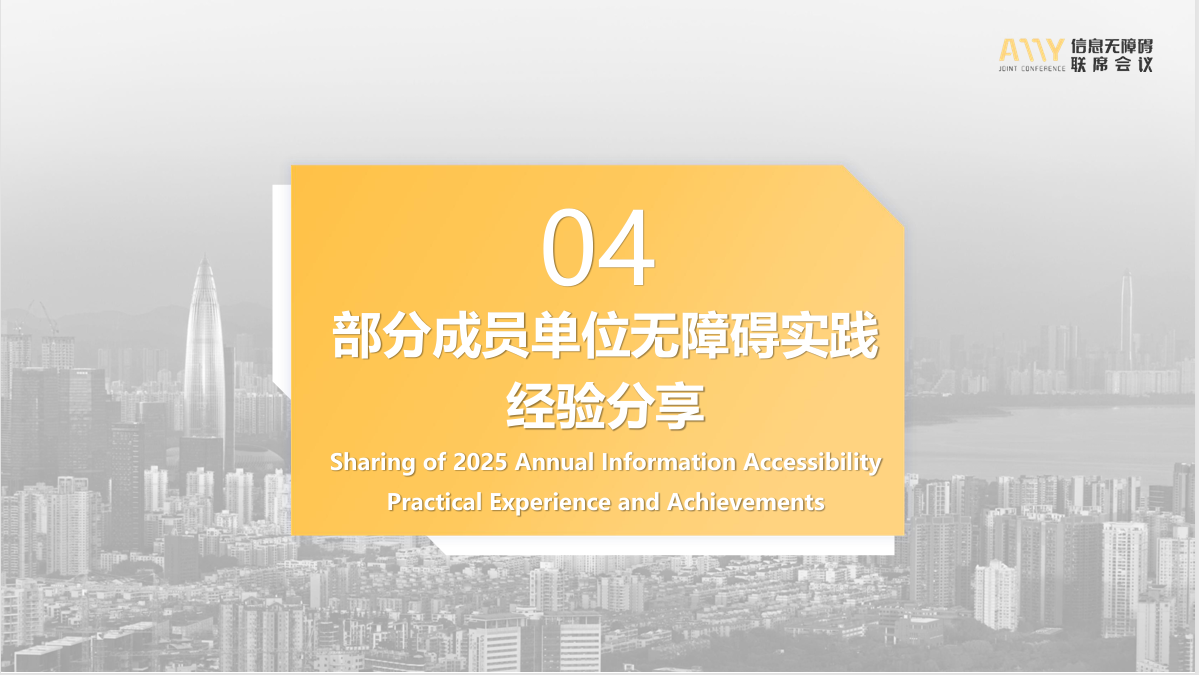 首先在行业交流和共建方面,联席会议联合举办了 2025 年科技无障碍发展大会(TADC),为企业、行业专家及从业者搭建交流平台,促进成果分享。在案例实践推广上,发起了“2025 可及信息无障碍案例评选”活动 ,收录代表性案例并汇编发布;还牵头开展了“2025 年中国信息无障碍十大进展”评选活动。