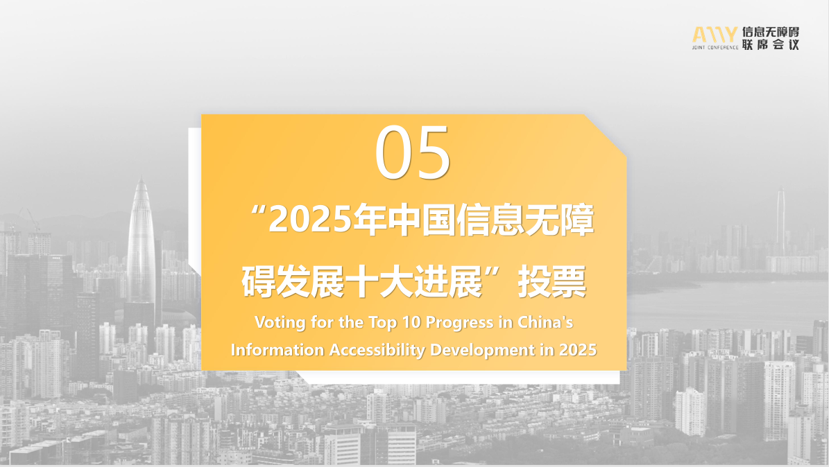 最后,与会代表共同开展了“2025年中国信息无障碍发展十大进展”投票。希望在新一届轮值总召集单位、副总召集单位的带领下,成员单位持续深化信息无障碍领域的交流协作,在标准制定、技术创新、场景落地等关键环节持续发力,共同书写信息无障碍事业高质量发展的新篇章。